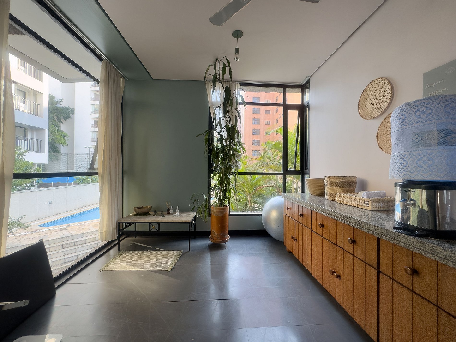 Além do apartamento, o condomínio é um grande diferencial. Os hóspedes possuem acesso à infraestrutura completa: piscina, academia recém-reformada, sauna seca, sala zen, lavanderia OMO e dois espaços de reunião (disponíveis mediante reserva prévia), ideais tanto para momentos de lazer quanto para quem precisa conciliar trabalho e estadia. O condomínio também disponibiliza serviço de arrumação do apartamento (mediante solicitação).