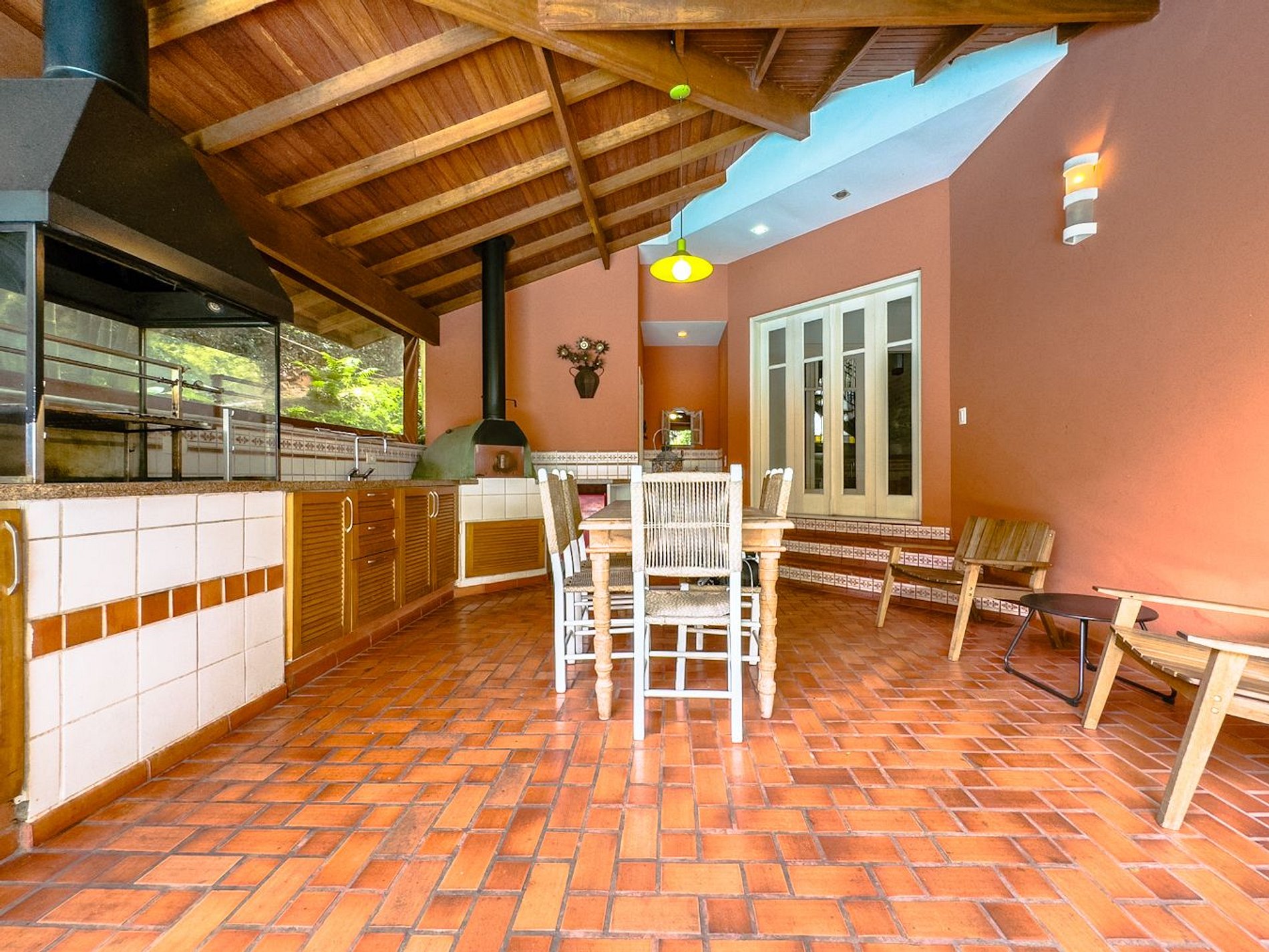 Esta casa na Granja Viana está localizada em um dos condomínios mais seguros, arborizados e agradáveis da região. A propriedade é simplesmente encantadora, com uma área gourmet que inclui churrasqueira e forno de pizza, integrada ao deck onde encontra-se uma piscina com aquecimento solar, perfeita para desfrutar momentos de lazer e diversão. E não para por aí! A sala de estar com pé direito duplo possui uma magnífica lareira, proporcionando um ambiente aconchegante e acolhedor.